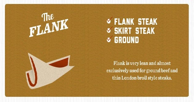 An interesting cut of meat, the flank is a rather tough slice of muscle that works really well either past deadening broiling or fast frying.